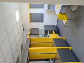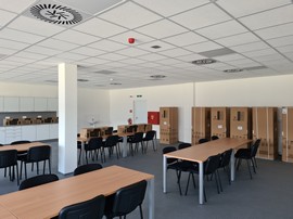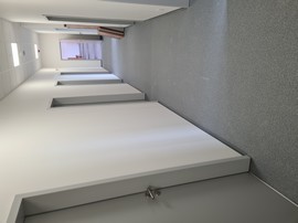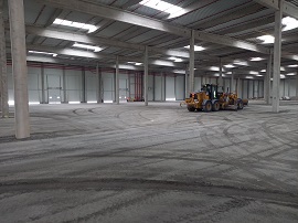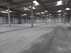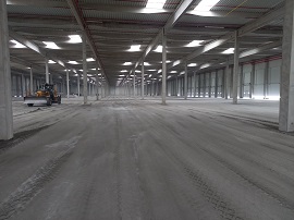 Střešní plášť je skládaný BROOF t3. Podlahu haly tvoří ŽB drátkobetonová řezaná podlaha s únosností 5t/m2.